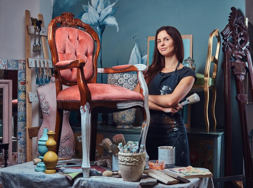 Kreidefarbe liebt Schutz: Dünne Wachsschichten oder ein wasserbasierter Klarlack bewahren Farbe und Struktur. Arbeiten Sie mit weichen Pinseln, vermeiden Sie dicke Schichten, und testen Sie stets den Endglanz unter realen Lichtverhältnissen.